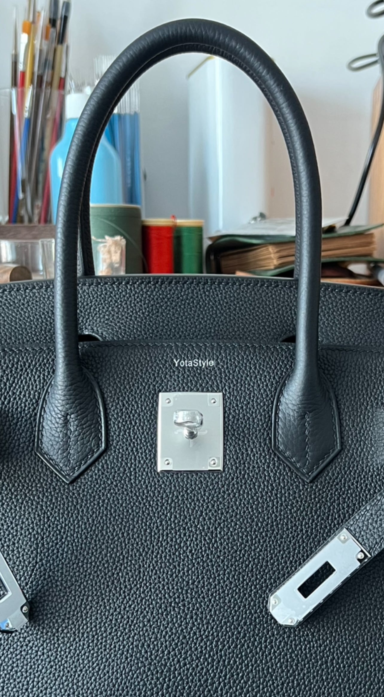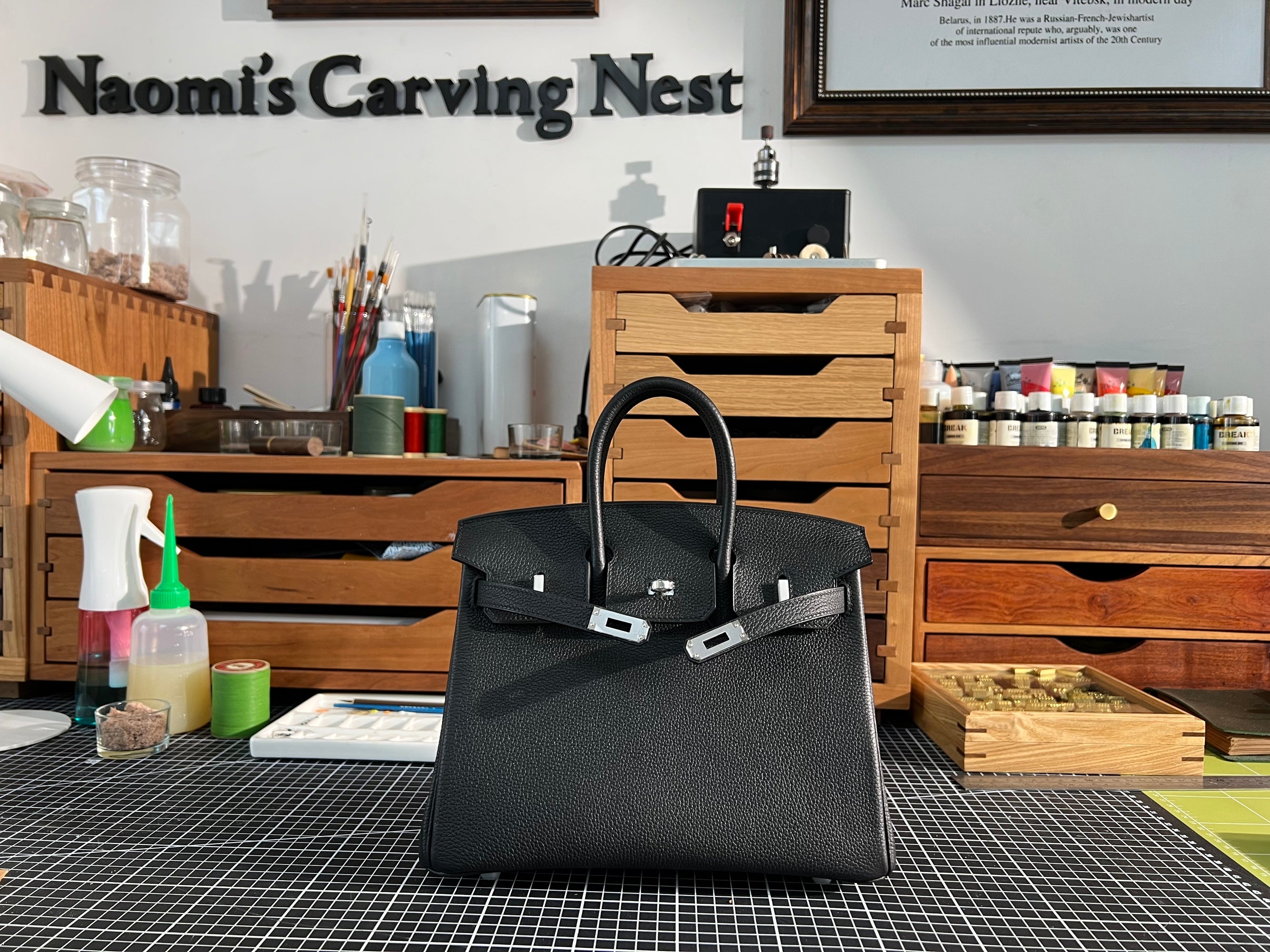 Each bag is custom-made in Naomi’s studio, using premium leather and carefully selected hardware.
