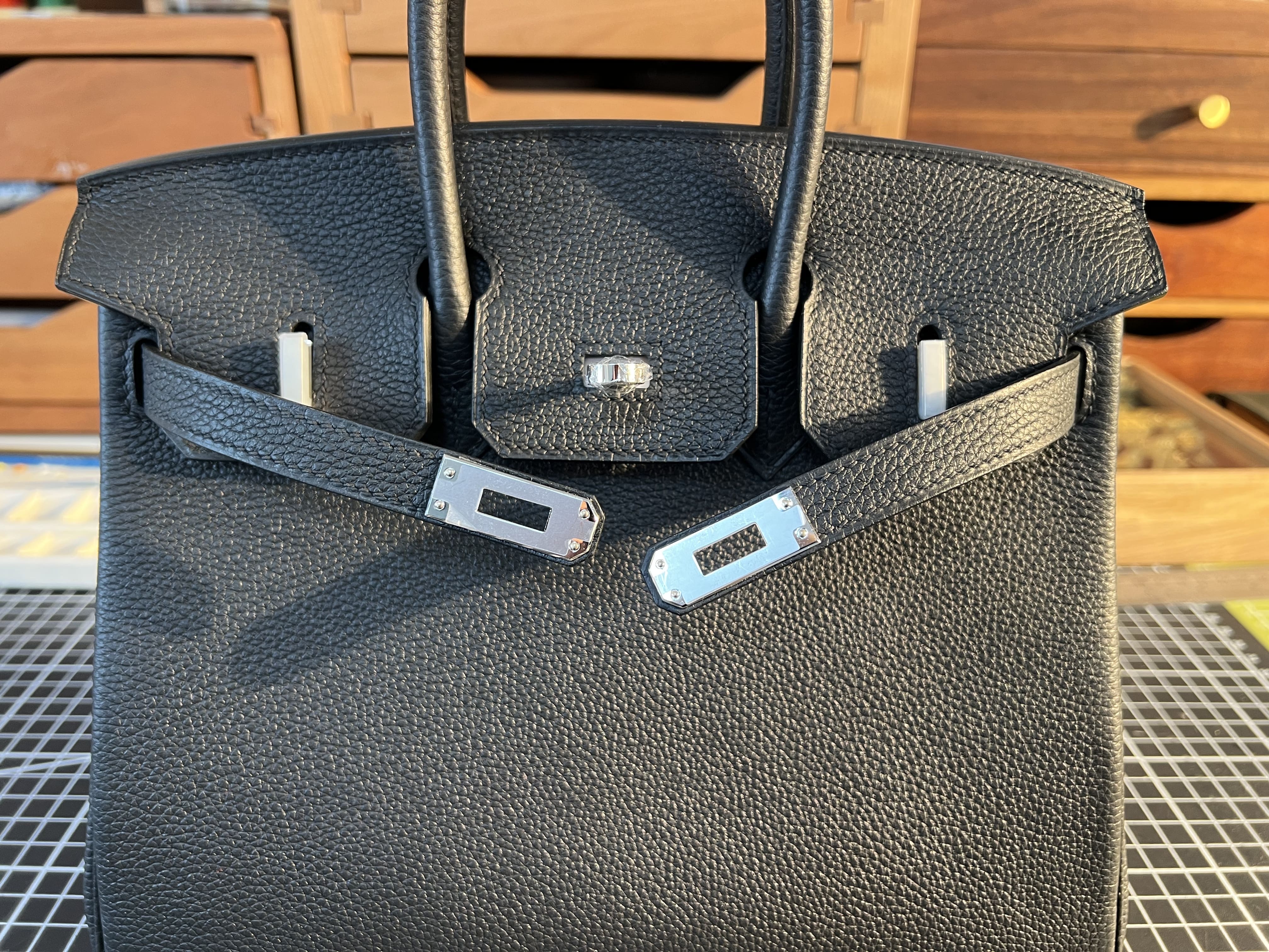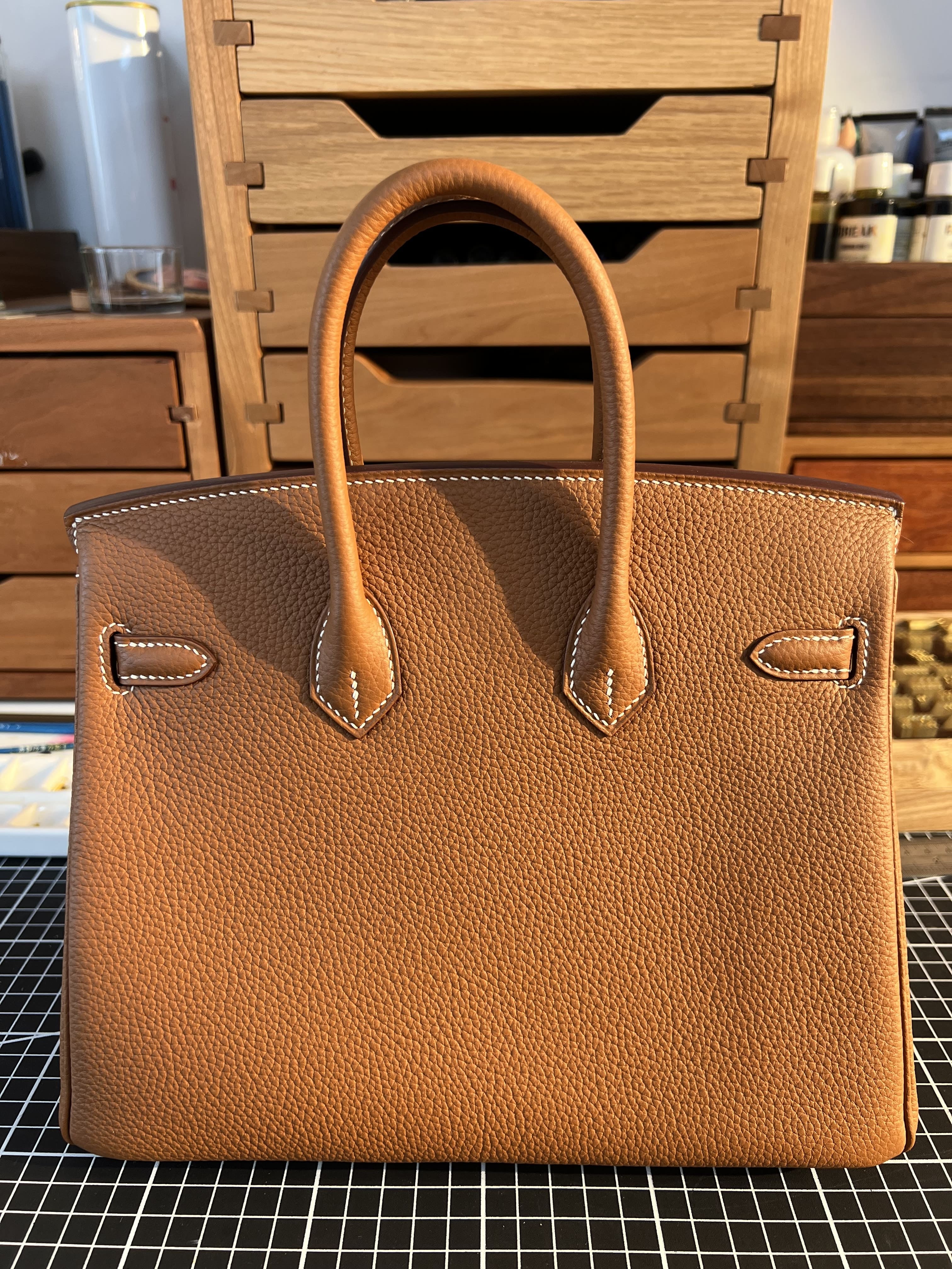 Our bags are made with full-grain leather, carefully stitched by hand, and finished with refined edges and custom hardware.
